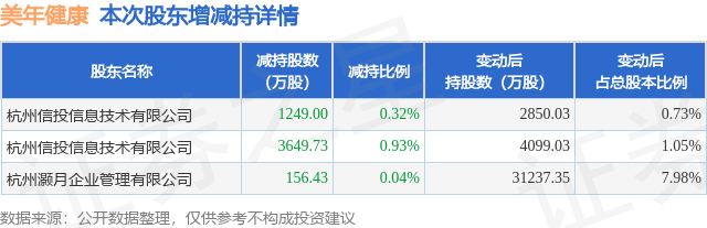 证券之星消息,1月16日美年健康发布公告《美年健康:关于5%以上股东权益变动触及1%刻度的公告》,其股东杭州信投信息技术有限公司、杭州灏月企业管理有限公司于2026年1月14日至2026年1月15日间合计减持5055.16万股,占公司目前总股本的1.2915%,变动期间该股股价上涨14.84%,截止1月15日收盘报8.51元。