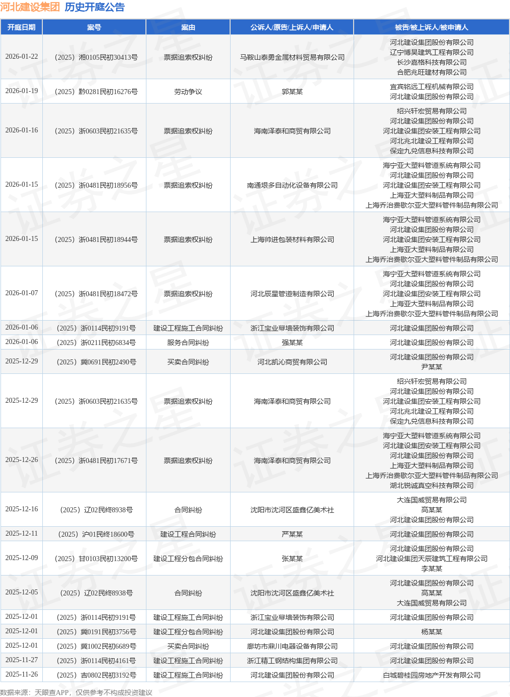 证券之星消息,根据天眼查APP显示,近日公布了一则河北建设集团股份有限公司作为被告/被上诉人的开庭公告,详细内容如下: