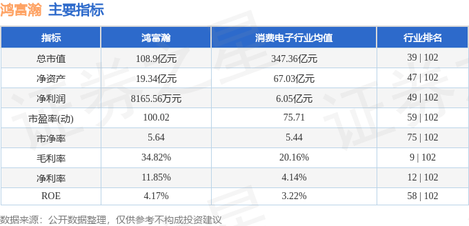 该股主要指标及行业内排名如下:
