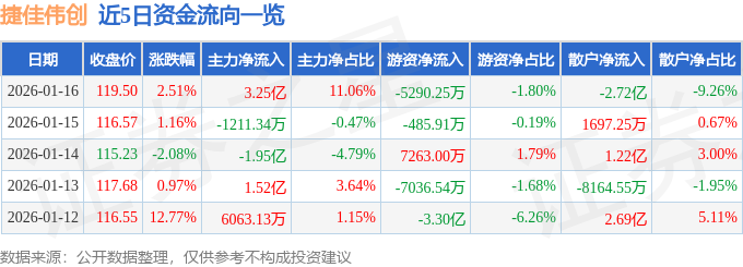 1月16日的资金流向数据方面,主力资金净流入3.25亿元,占总成交额11.06%,游资资金净流出5290.25万元,占总成交额1.8%,散户资金净流出2.72亿元,占总成交额9.26%。