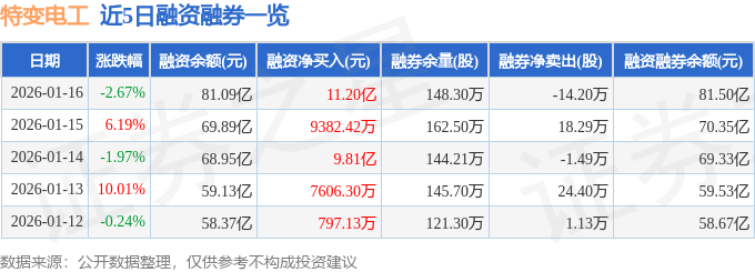 特变电工融资融券信息显示,融资方面,当日融资买入33.07亿元,融资偿还21.86亿元,融资净买入11.2亿元,净买入额两市排名第2,连续3日净买入累计21.95亿元。融券方面,融券卖出11.39万股,融券偿还25.59万股,融券余量148.3万股,融券余额4112.28万元。融资融券余额81.5亿元。