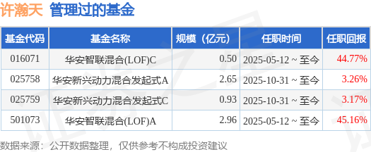 许瀚天先生:中国国籍,硕士研究生。曾任申万菱信基金管理有限公司行业研究员,2022年9月加入华安基金,历任投资研究部行业研究员,基金经理助理,现任基金经理。2025年5月12日担任华安智联混合型证券投资基金(LOF)基金经理。