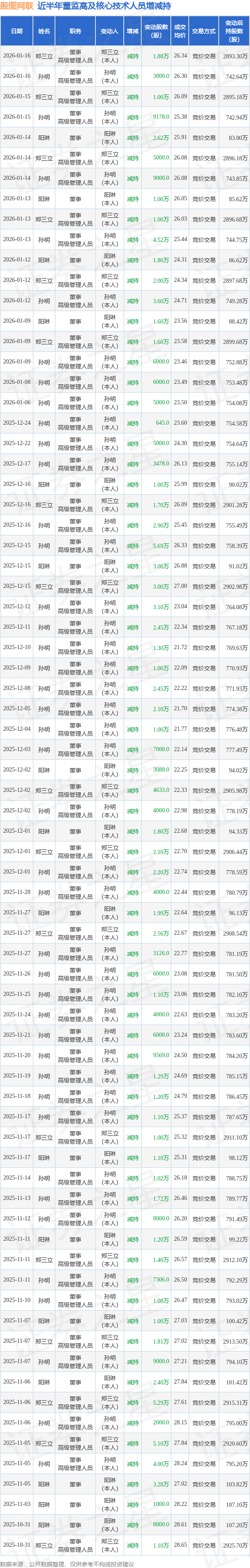 殷图网联近半年内的董监高及核心技术人员增减持详情如下: