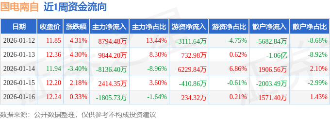 资金流向数据方面,本周国电南自主力资金合计净流入1.11亿元,游资资金合计净流入3674.63万元,散户资金合计净流出1.48亿元。本周资金流向一览见下表: