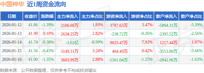 资金流向数据方面,本周中国神华主力资金合计净流入1251.32万元,游资资金合计净流入1.14亿元,散户资金合计净流出1.27亿元。本周资金流向一览见下表: