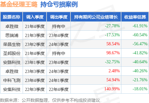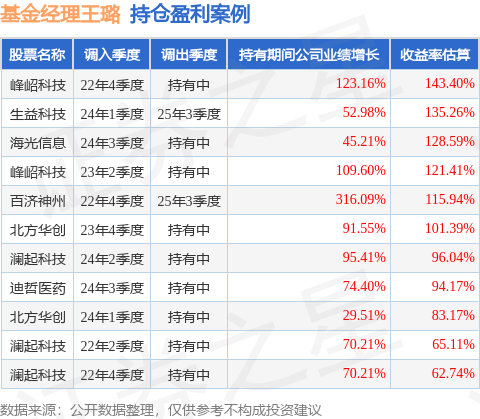 王璐管理的鹏华芯片产业混合发起式A基金在24年2季度买入澜起科技,已连续持有1年又2个季度。持有期间的估算收益率为96.04%,持有期间澜起科技在2024年到2025年的中报归属净利润增幅达95.41%。