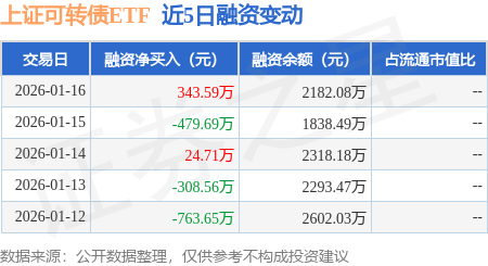 证券之星消息,1月16日,上证可转债ETF(511180)融资买入9435.09万元,融资偿还9091.51万元,融资净买入343.59万元,融资余额2182.08万元。