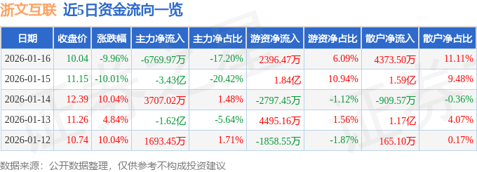 1月16日的资金流向数据方面,主力资金净流出6769.97万元,占总成交额17.2%,游资资金净流入2396.47万元,占总成交额6.09%,散户资金净流入4373.5万元,占总成交额11.11%。