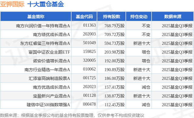 根据2025基金Q3季报公募基金重仓股数据,重仓该股的公募基金共54家,其中持有数量最多的公募基金为南方基金的南方兴润价值一年持有混合A。南方兴润价值一年持有混合A目前规模为46.17亿元,最新净值0.9511(1月16日),较上一交易日上涨0.38%,近一年上涨32.8%。该公募基金现任基金经理为史博。史博在任的基金产品包括:南方绩优成长混合A,管理时间为2011年2月17日至今,期间收益率为236.2%;南方瑞合定开混合(LOF),管理时间为2018年9月6日至今,期间收益率为188.86%;南方港股创新视野一年持有混合A,管理时间为2021年12月28日至今,期间收益率为59.29%。