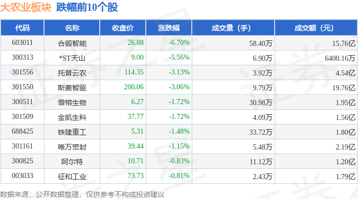 从资金流向上来看,当日大农业板块主力资金净流入11.43亿元,游资资金净流出5.72亿元,散户资金净流出5.71亿元。大农业板块个股资金流向见下表: