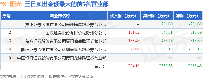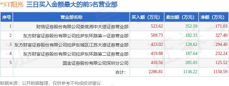 证券之星消息,沪深交易所2026年1月19日公布的交易公开信息显示,*ST阳光(000608)因连续三个交易日内,涨幅偏离值累计达到12%的ST证券、*ST证券和未完成股改证券登上龙虎榜。此次是近5个交易日内第1次上榜。