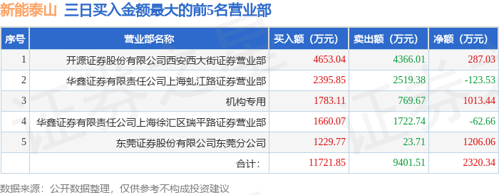 证券之星消息,沪深交易所2026年1月19日公布的交易公开信息显示,新能泰山(000720)因连续三个交易日内,涨幅偏离值累计达到20%的证券登上龙虎榜。此次是近5个交易日内第1次上榜。