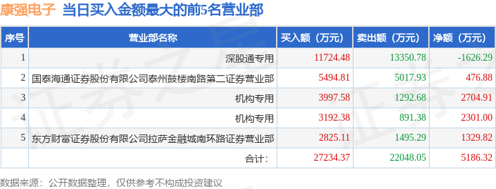 从龙虎榜公布的当日买卖数据来看,机构合计净买入5005.91万元,北向资金合计净卖出1626.29万元。