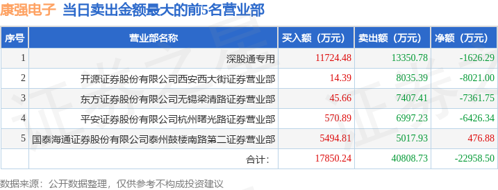 证券之星消息,沪深交易所2026年1月19日公布的交易公开信息显示,康强电子(002119)因日换手率达到20%的前5只证券登上龙虎榜。此次是近5个交易日内第2次上榜。