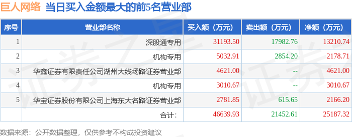 证券之星消息,沪深交易所2026年1月19日公布的交易公开信息显示,巨人网络(002558)因日涨幅偏离值达到7%的前5只证券登上龙虎榜。此次是近5个交易日内第1次上榜。