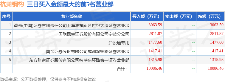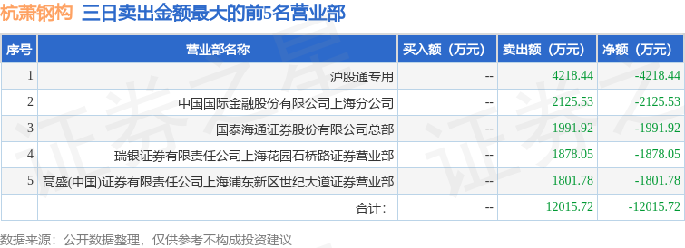 证券之星消息,沪深交易所2026年1月19日公布的交易公开信息显示,杭萧钢构(600477)因非ST、*ST和S证券连续三个交易日内收盘价格跌幅偏离值累计达到20%的证券登上龙虎榜。此次是近5个交易日内第3次上榜。