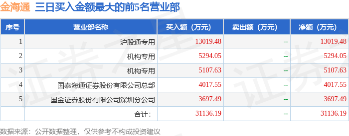 证券小知识:龙虎榜是交易所披露的竞价交易公开信息,现身龙虎榜的个股都是当日最为活跃的个股,是投资者日常重点关注的数据。交易所公布当日买入金额和卖出金额前五名的席位,其中一些席位代表特殊意义,如机构专用席位是指基金专用席位、券商自营专用席位、社保专用席位、券商理财专用席位、保险机构专用席位、保险机构租用席位、QFII专用席位等机构投资者买卖证券的专用通道和席位。深股通专用、沪股通专用为北向资金的交易席位。从龙虎榜数据可以发现和研究机构、游资和散户的资金动向。一些营业部席位经常上榜,市场知名度较高,投资者整理代表散户、游资、量化等不同资金的营业部席位。