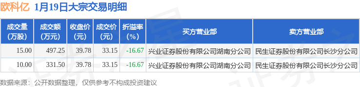 证券之星消息,1月19日欧科亿发生大宗交易,交易数据如下:
