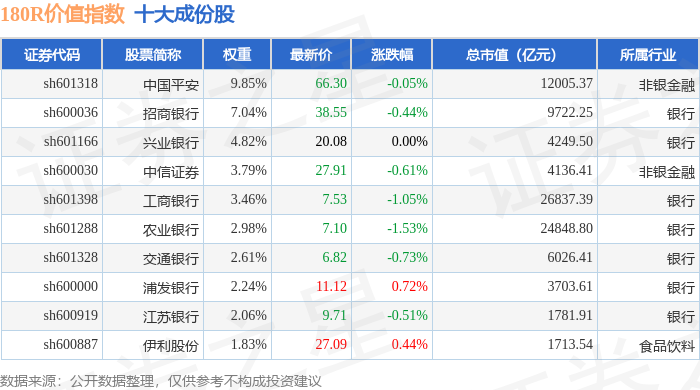 证券之星消息,1月19日,180R价值(000031)指数报收于3203.59点,涨0.1%,成交2340.0亿元,换手率0.61%。当日该指数成份股中,上涨的有67家,中航机载以10.02%的涨幅领涨,下跌的有61家,华润微以6.03%的跌幅领跌。