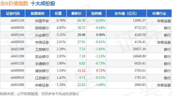 全R价值(000060)指数十大成份股详情如下: