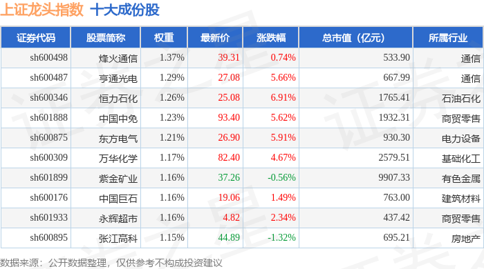 上证龙头(000065)指数十大成份股详情如下: