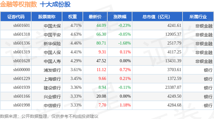 金融等权(000076)指数十大成份股详情如下: