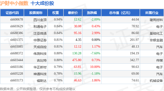 沪财中小(000091)指数十大成份股详情如下: