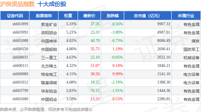证券之星消息,1月19日,沪投资品(000102)指数报收于8393.76点,涨1.23%,成交1465.04亿元,换手率2.26%。当日该指数成份股中,上涨的有33家,中国西电以10.04%的涨幅领涨,下跌的有15家,江西铜业以5.63%的跌幅领跌。