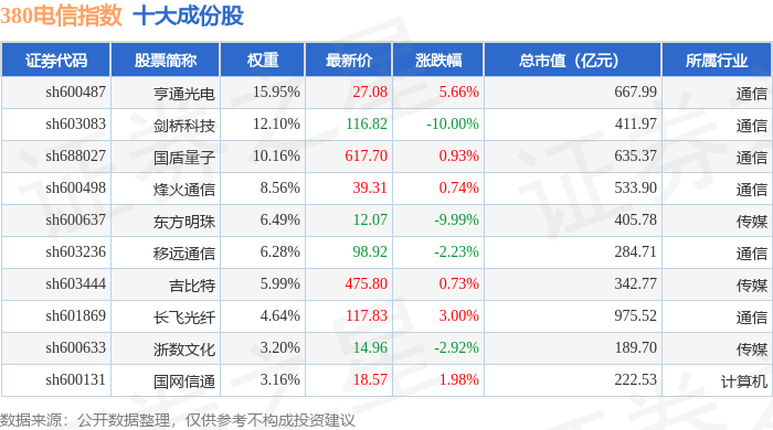 380电信(000112)指数十大成份股详情如下: