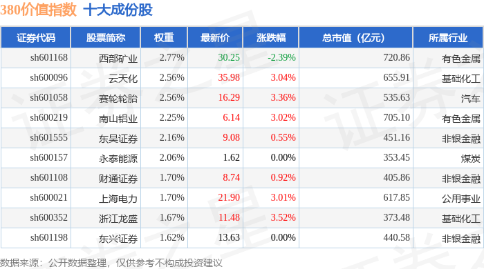 380价值(000118)指数十大成份股详情如下: