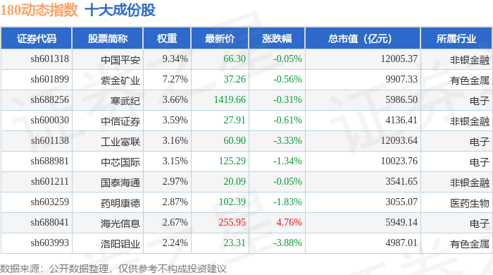 180动态(000123)指数十大成份股详情如下: