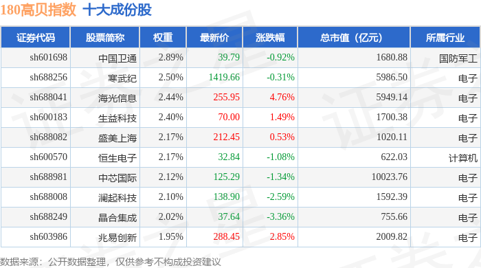 180高贝(000135)指数十大成份股详情如下: