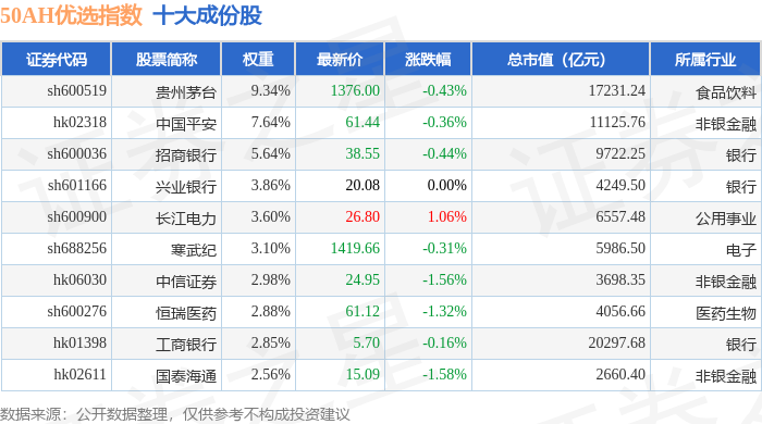 50AH优选(000170)指数十大成份股详情如下: