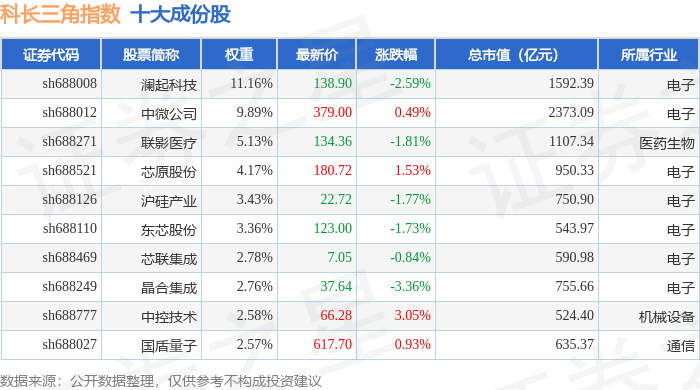 证券之星消息,1月19日,科长三角(000695)指数报收于1143.73点,跌1.24%,成交600.29亿元,换手率2.58%。当日该指数成份股中,上涨的有19家,盛科通信以8.74%的涨幅领涨,下跌的有42家,容百科技以11.16%的跌幅领跌。
