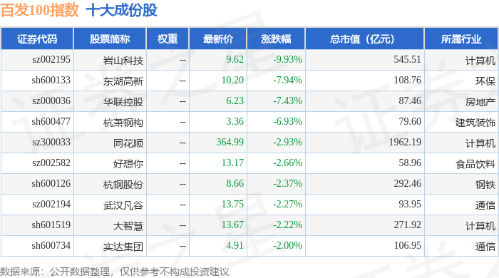 百发100(000851)指数十大成份股详情如下: