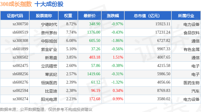 证券之星消息,1月19日,300成长(000918)指数报收于5262.52点,跌0.09%,成交2898.17亿元,换手率1.12%。当日该指数成份股中,上涨的有48家,思源电气以10.0%的涨幅领涨,下跌的有49家,洛阳钼业以3.88%的跌幅领跌。