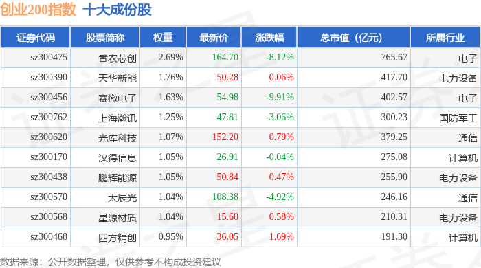 创业200(399019)指数十大成份股详情如下: