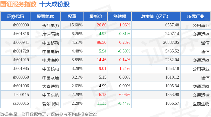 国证服务(399320)指数十大成份股详情如下: