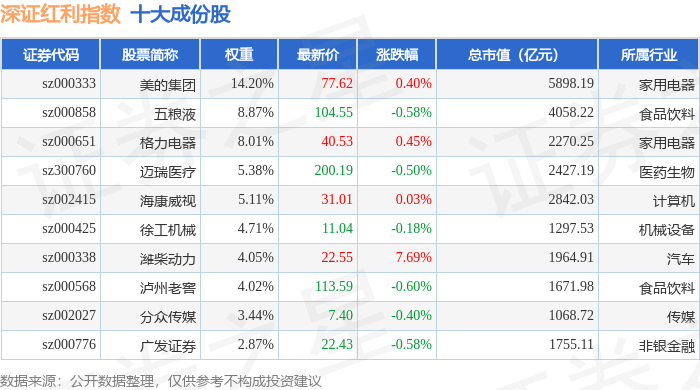 深证红利(399324)指数十大成份股详情如下: