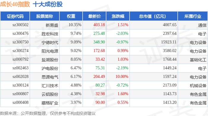 成长40(399326)指数十大成份股详情如下: