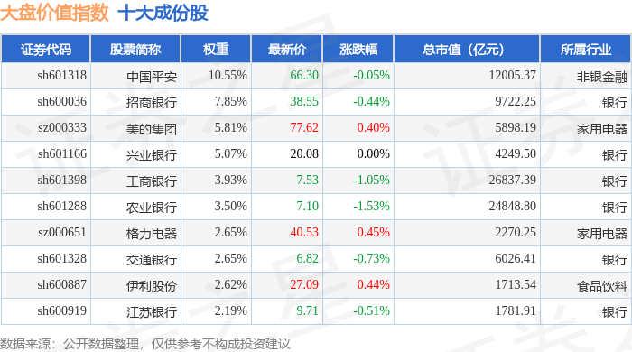 大盘价值(399373)指数十大成份股详情如下:
