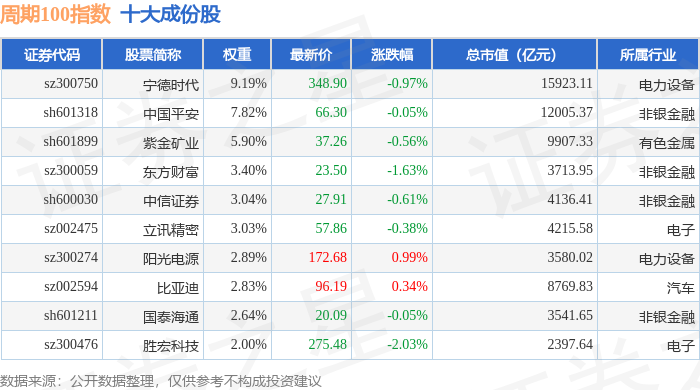 周期100(399402)指数十大成份股详情如下: