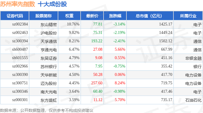 苏州率先(399410)指数十大成份股详情如下: