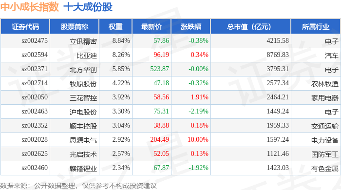证券之星消息,1月19日,中小成长(399602)指数报收于1382.19点,涨1.06%,成交1437.72亿元,换手率3.14%。当日该指数成份股中,上涨的有72家,思源电气以10.0%的涨幅领涨,下跌的有27家,沃尔核材以4.56%的跌幅领跌。