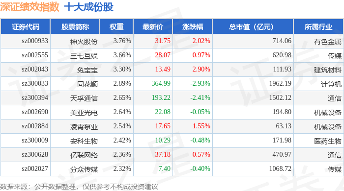 深证绩效(399655)指数十大成份股详情如下: