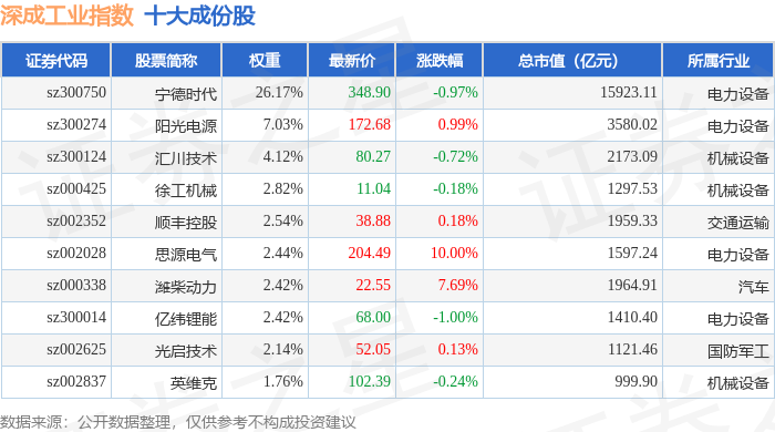 证券之星消息,1月19日,深成工业(399682)指数报收于1996.28点,涨1.0%,成交1715.77亿元,换手率2.97%。当日该指数成份股中,上涨的有76家,许继电气以10.02%的涨幅领涨,下跌的有35家,航天发展以4.93%的跌幅领跌。