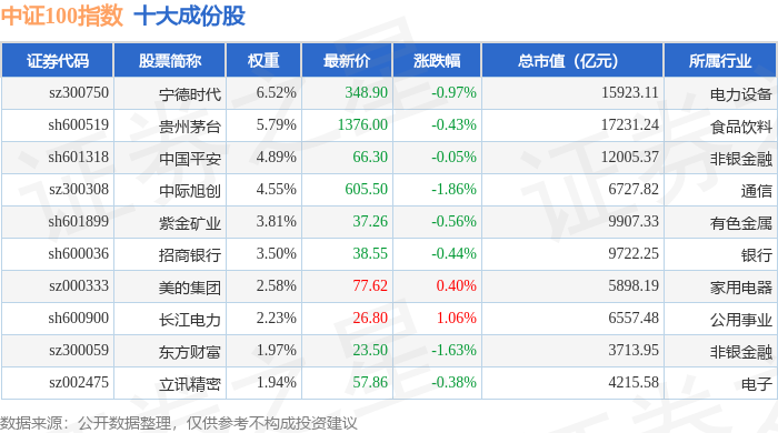 资金流向方面,中证100(399903)指数成份股当日主力资金净流出合计41.91亿元,游资资金净流出合计9.57亿元,散户资金净流入合计51.48亿元。成份股资金流向详情见下表: