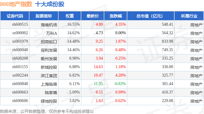 800地产(399965)指数十大成份股详情如下:
