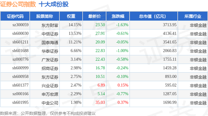 证券之星消息,1月19日,证券公司(399975)指数报收于845.95点,跌0.37%,成交320.17亿元,换手率0.93%。当日该指数成份股中,上涨的有20家,国联民生以2.6%的涨幅领涨,下跌的有21家,华林证券以1.74%的跌幅领跌。