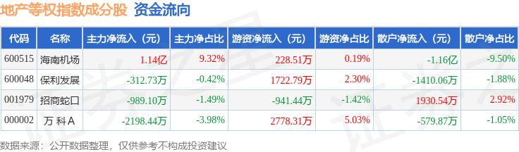 资金流向方面,地产等权(399983)指数成份股当日主力资金净流入合计7891.09万元,游资资金净流入合计3788.17万元,散户资金净流出合计1.17亿元。成份股资金流向详情见下表: